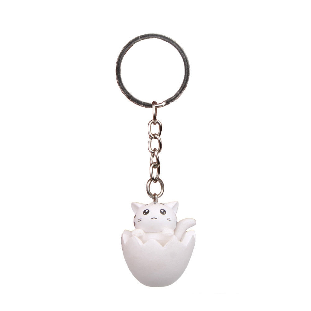 Cute Carton Cat 'White Cat | Brown Egg Shell' Keyring SIlicone Keychain Description:Imagine a world...