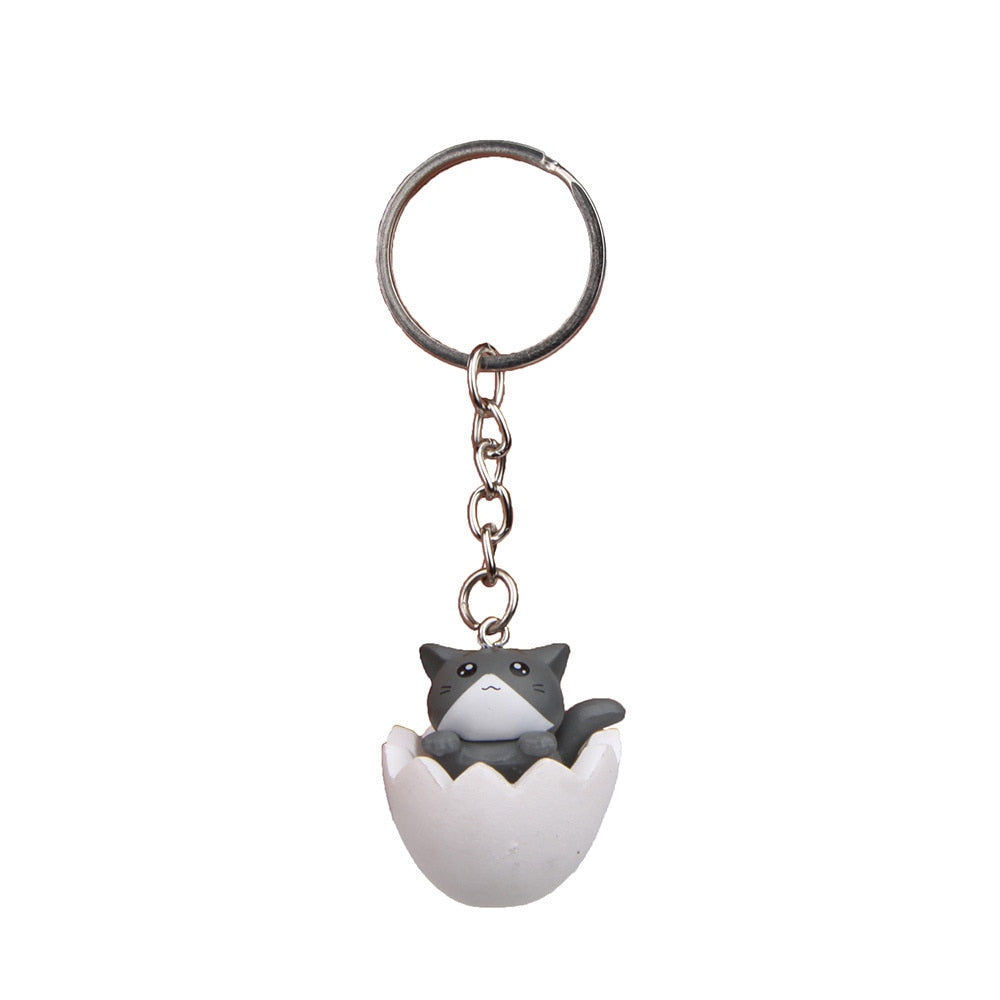 Cute Carton Cat 'Gray Cat | White Egg Shell' Keyring SIlicone Keychain