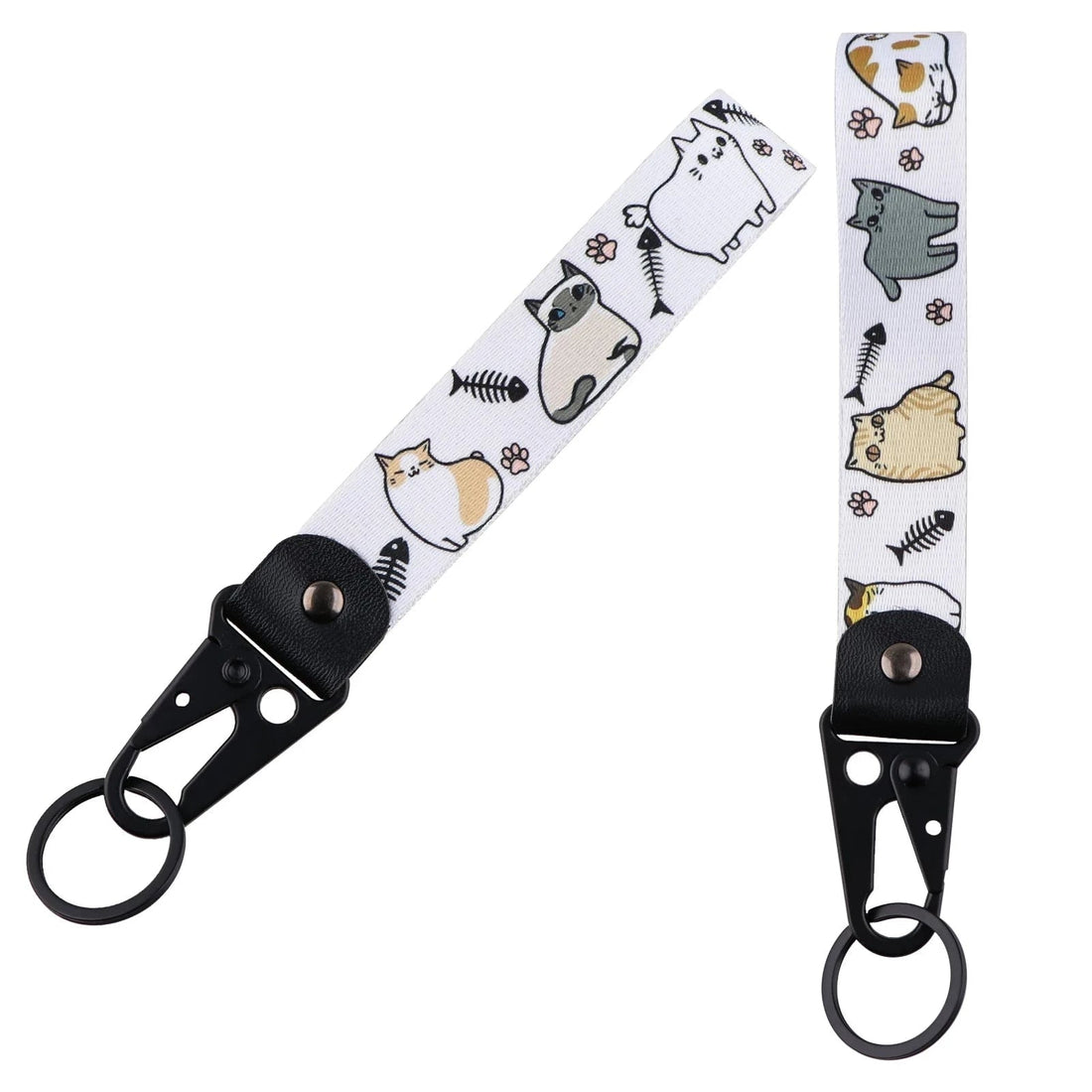 Cats & Fish Bones Wrist Lanyard Keychain with Keyring Clip