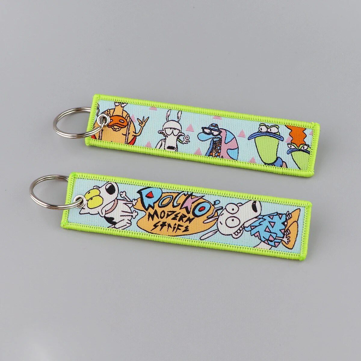 Our Rocko's Modern Life Embroidered Keychain is a stylish and unique accessory that adds a touch of personality to your keys. The intricate embroidery on our Rocko's Modern Life Embroidered Keychain creates an eye-catching and personalized design that stands out from traditional keyrings.